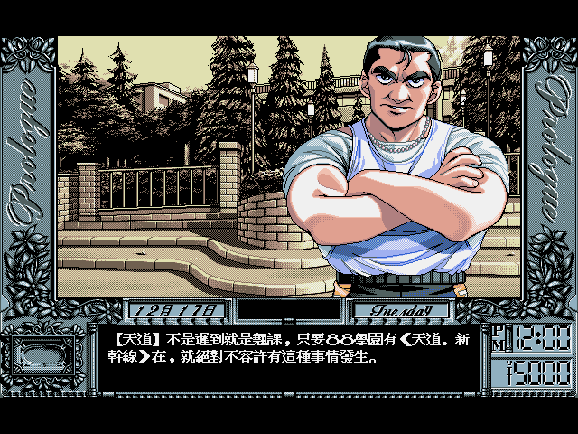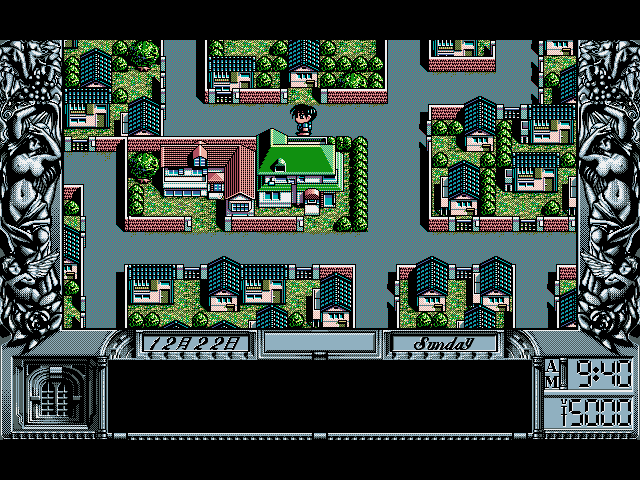我们的主角究竟是个怎样的人?虽然游戏中刻意的没有出现主角的面部,但我们还是可以充分的YY一下,归纳出下面几点来:长得不错,成绩中下不努力的缘故),游手好闲,运动万能(尤其擅长打架及ml),好奇心重,好色心强,从不按常理出牌。就是这么一位老大,要在寒假短短的两个星期内(为日本的高中生默哀一分钟),泡到自己所爱的MM,顺便选定未来的道路。游戏中你所要做的事情和现实里几乎是一样的,洗澡,睡觉,起床,逛街,打工,搭讪,喝茶,打网球,看电影,玩电玩,看日出,温泉旅行,当然还有扁人,偷窥,私奔,XXX等等。周围也都是有血有肉的人,先不谈各种各样的MM,就是主角的白痴损友信良,变态的偷拍佬芳树,让人看了就不爽的有钱大少爷西御寺,还有那个hentai教师天道新干线,无不是让你多年以后听了名字就要捧腹的角色!