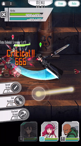 「刀剑神域-记忆重组-」是一款可以藉由智慧型手机来重新体验电视动画及本作品专属原创故事的动作RPG游戏。本作品的一大特色,是只要用一根手指,就能操作出现在动画里的桐人、亚丝娜、莉法及诗乃等充满个性的角色们使出众多华丽的技能,打败伺机突袭的强敌们以突破各式关卡。除此之外,本作品还有多人线上模式,让玩家可以和伙伴们在关卡中互相合作,一起享受联合打倒强敌的快感!