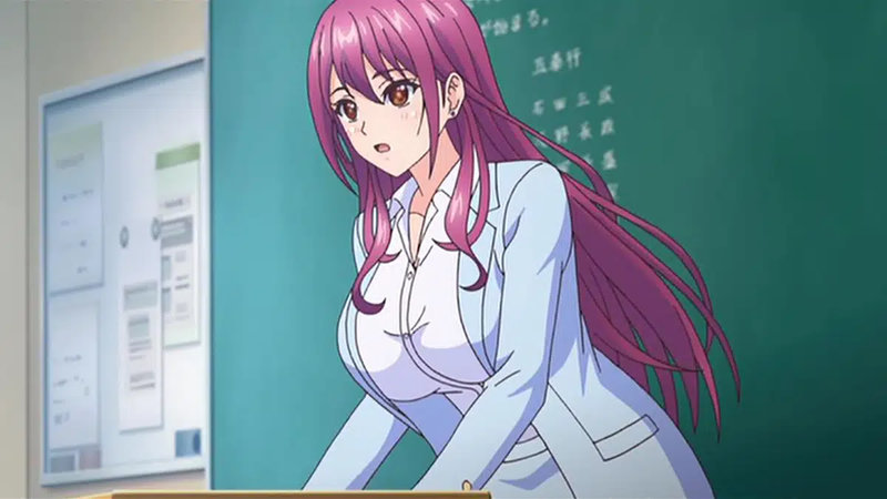 这一话里粉毛老师完全变成男主的性玩具了,不论在学校那里都可以来一发。