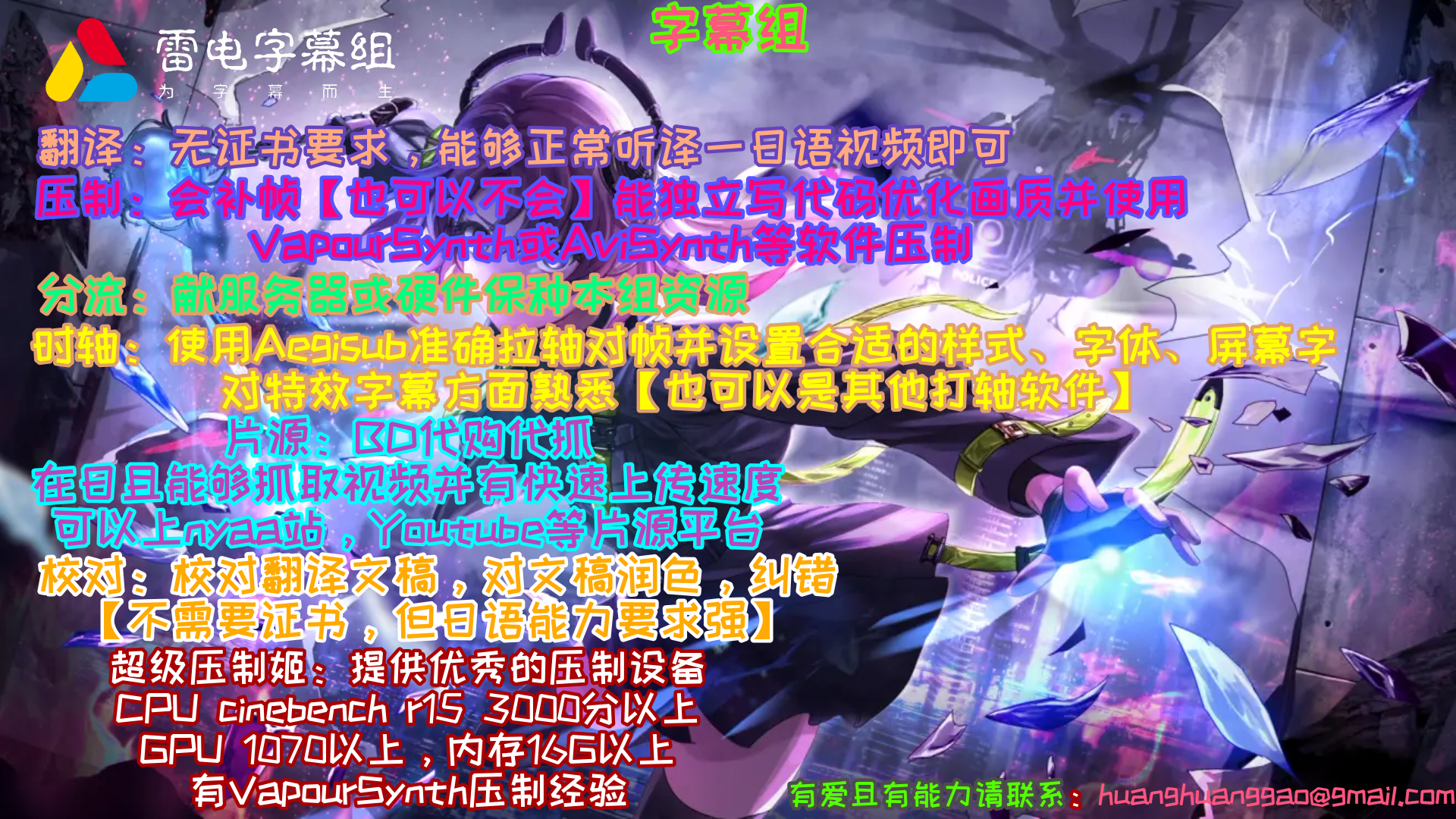 最近发现多了个字幕组,雷电字幕组,看请来是新欣字幕组,看来为了生存下去很拼啊,这么快就汉化出来31号的了,给别人宣传一下,同时祝福字幕组越办越好,嘎油