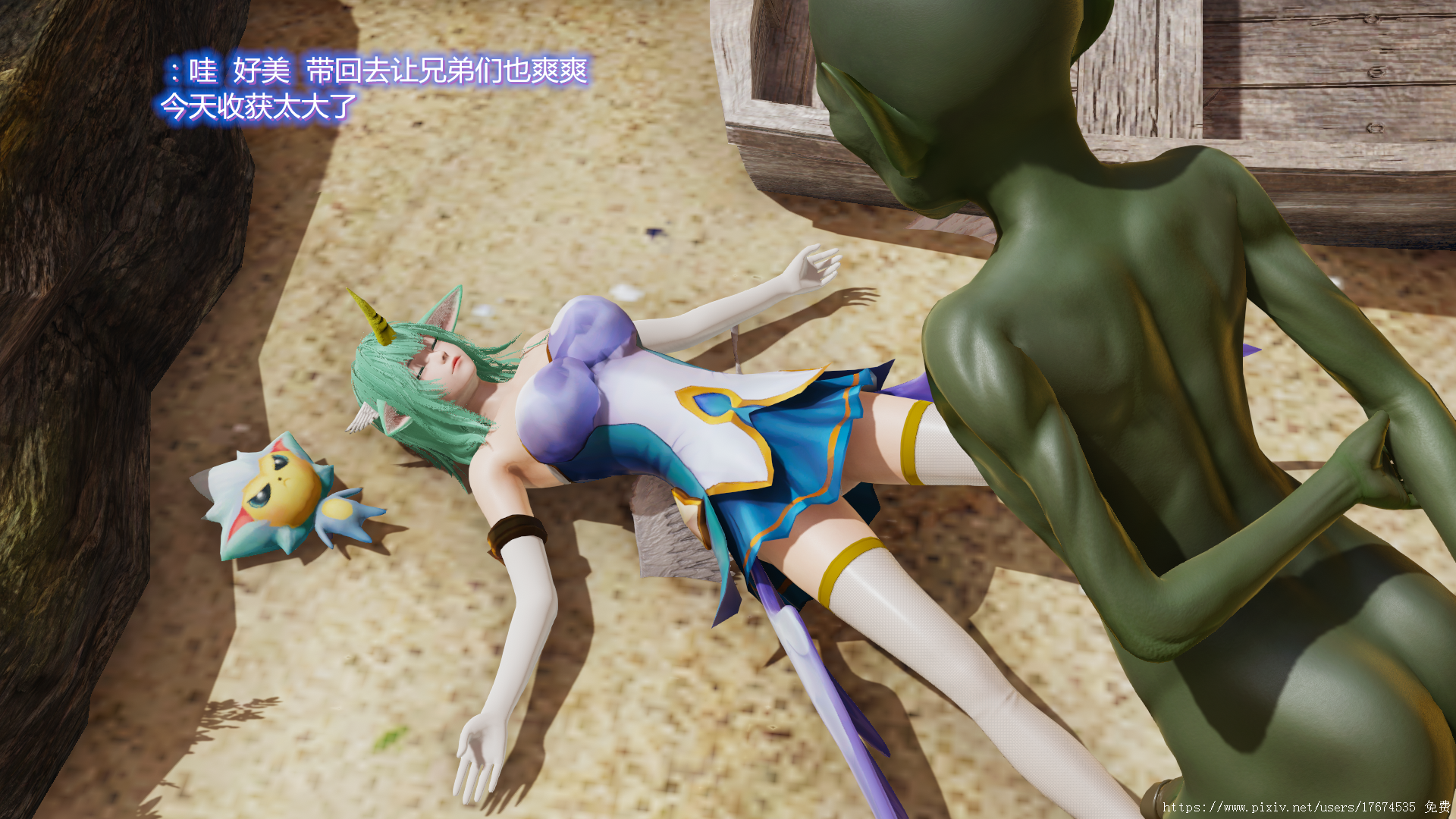 一部3D风格的同人漫画,剧情上没有什么新意,大体上说的是哥布林捡到一本魔法书,魔法书白送女奴隶……