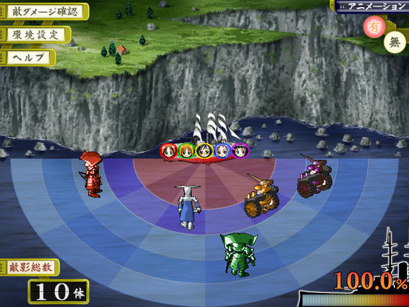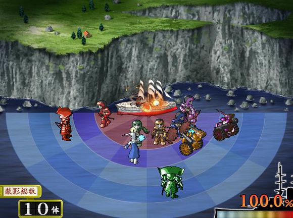 战斗界面如上图,实在是简单到不能再简单。你要做的仅仅是把你方人员派放到有限的空间内,然后根据提示点击设定完了。之后便是敌我双方的互砍.战斗基本就不关你事了,而且战斗就是在这么一个简单的画面上进行的