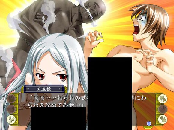 不管怎么说,elf还是elf,本作的对白充满了elf式的黑色幽默。主角们的母舰的”灵魂”那啥伪LOLI更是个重口痴女。觉得男主不够她玩的,还用式神变个黑叔叔出来…..槽点满载啊。