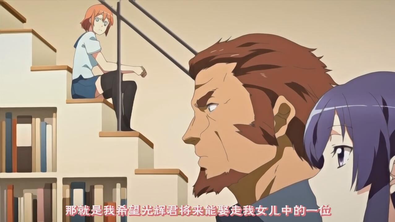 这集说的是暑假的前一天在花菱家的客厅,父亲把大家都叫回来开了一个家庭会议,宣布了这个暑假邻居的光辉君会在他们家度过,咦惹~和一群女性的暑期生活呢,想想都有点激动←_←然后花菱家的父亲对光辉说了一件重要的事情,说的是花菱家父亲和光辉的父亲曾经有过一个约定,要光辉娶走花菱家的一位女儿~所以希望在暑假和一位女儿结下订婚~厉害厉害~