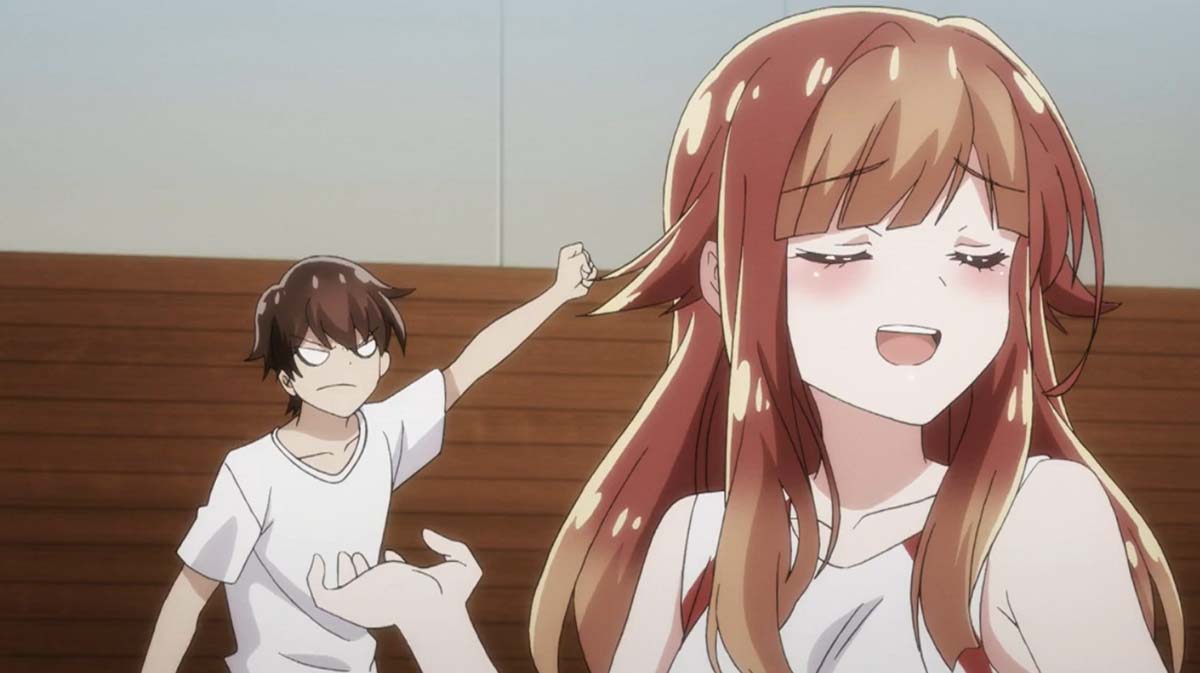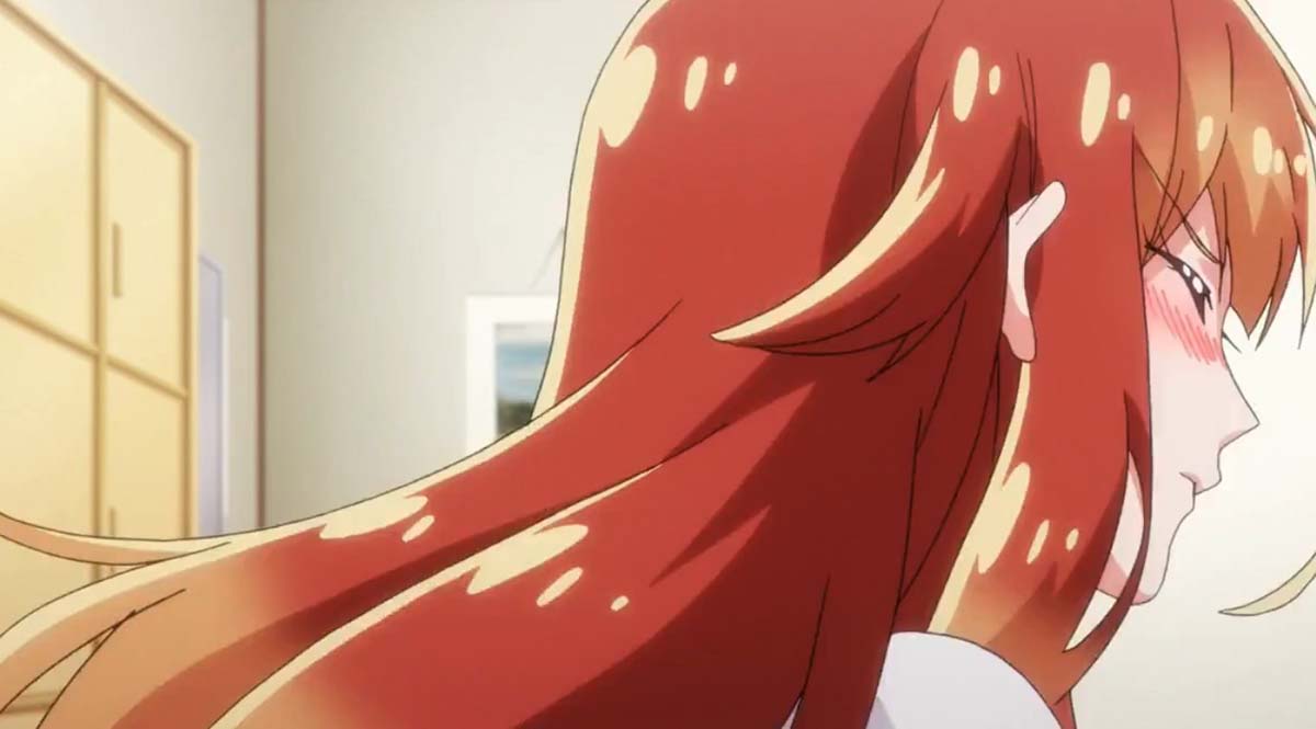 续上一话剧情开展,男主和橘毛互相喜欢(上图左三),但是作为里番界的老司机,知道这个不可能仅仅是个纯爱番,不然出场那么多女性角色干什么?我坚信,排球队不攻略完,这个动画是不可能完结的。果然这一话攻略了橘毛排球队的队友黑毛。